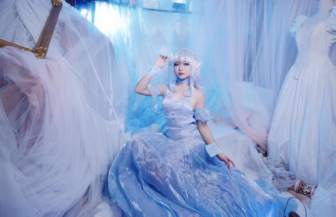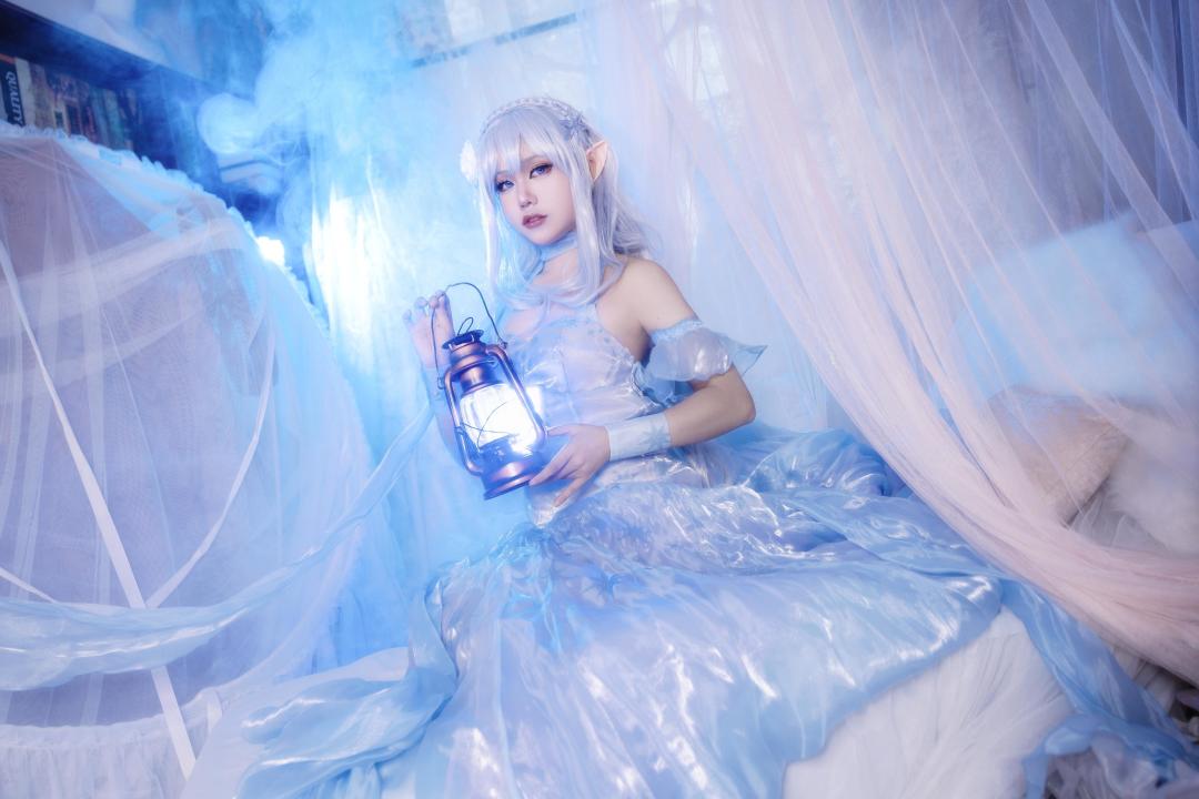 今天给大家分享的Cosplay作品cos的原型是来自动漫《RE:从零开始的异世界生活》中的冰晶礼服·艾米莉亚形象