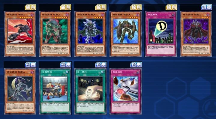 5、幻枪士(约翰)、虏获装置(怪兽门)、暗黑魔兽死亡护法师(马利克)、暗黑人偶(莫良)、遗言的假面(马利克)