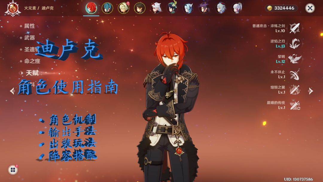 迪卢克是我的第一个五星角色,也是我目前唯一满命的五星角色,一直想找时间出一期迪卢克的角色攻略。