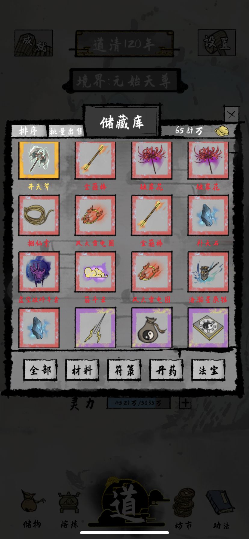 完全没有看攻略 重生了无数次,终于直上天尊,这一次可以说是十分轻松,雷劫和Boss都很轻松的直接秒杀,上了天尊之后又打了一百多层,发现没意思,后面已经没东西了,每层都是秒杀,顺便感慨一波无敌是多么寂寞。放下图纪念一波