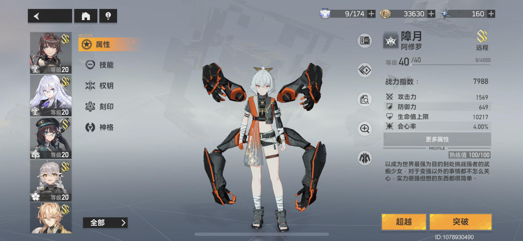 目前而言是主c阿修罗,提尔和潮音辅助,提尔算半个副c吧,伤害有时候比阿修罗还高,而且好多不懂,刻印都用推荐的,神格也是哪里亮了点哪里,没有抽过专武,但是阿修罗换了个苏炽(看帖子推荐的,不太懂)