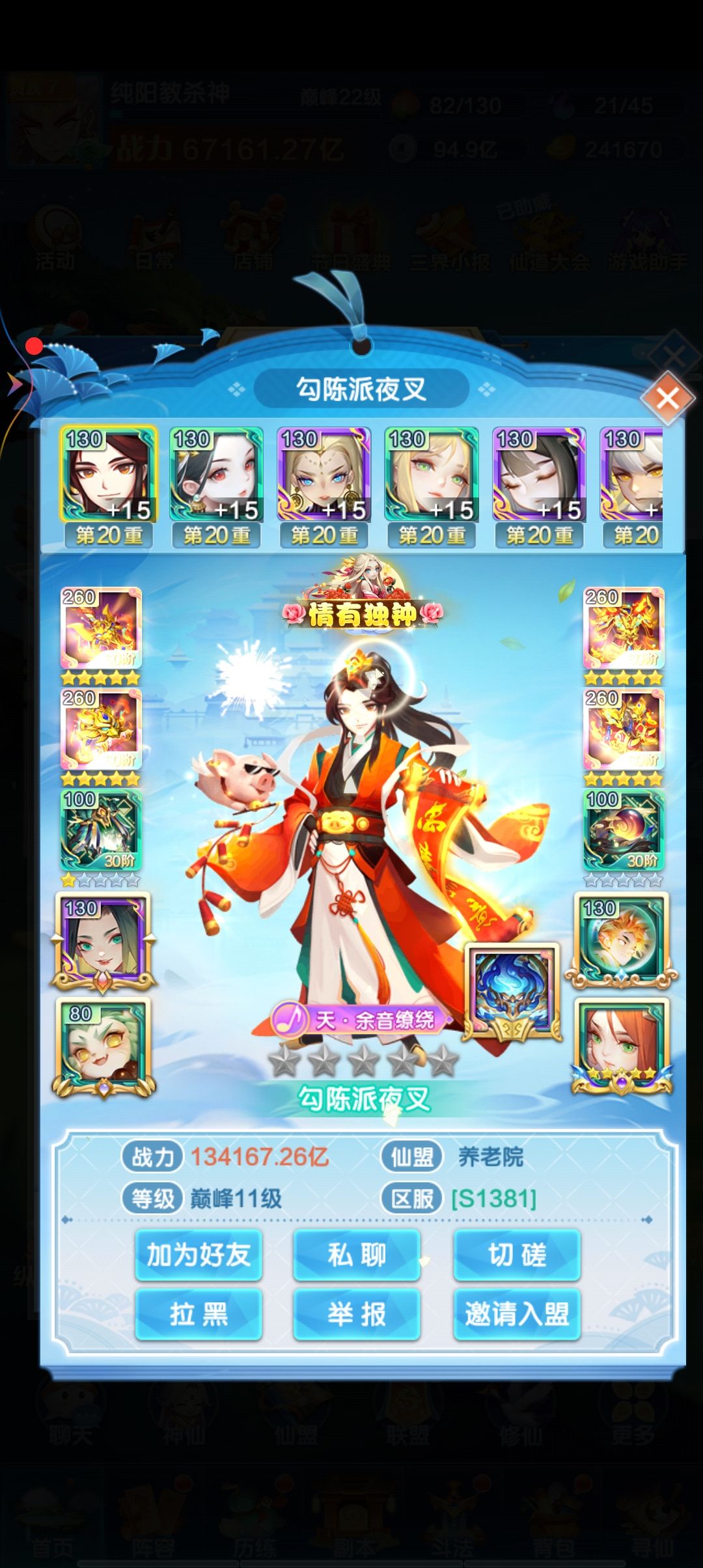 夭寿啦,对面13万亿战力没打过我6.7万亿的,😀,我1破仓情书一幻彩,对面2青书4幻彩,哈哈