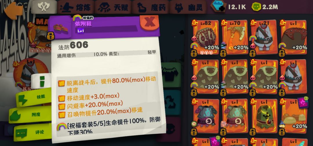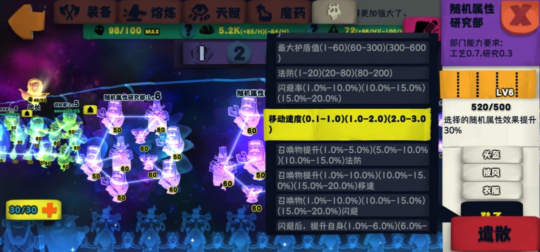 部门属性选择: 鞋子(移动速度)