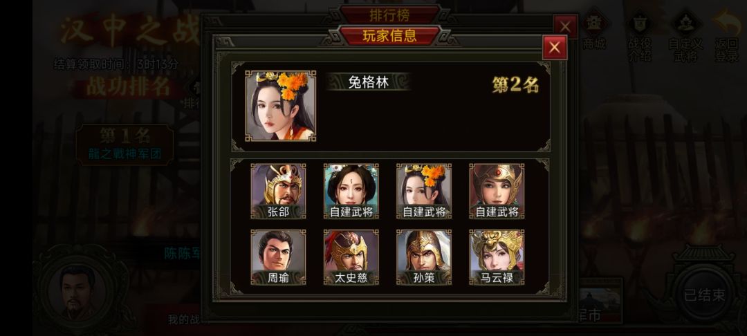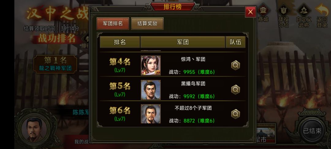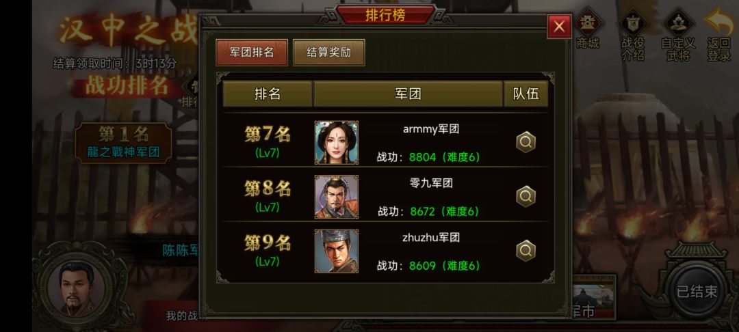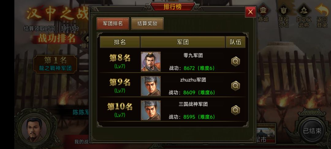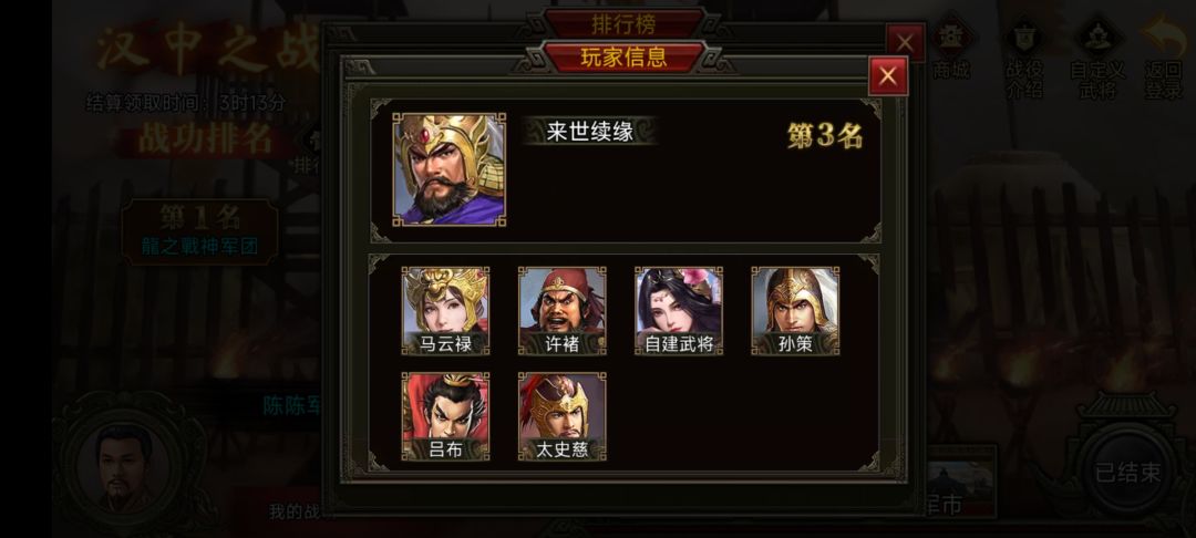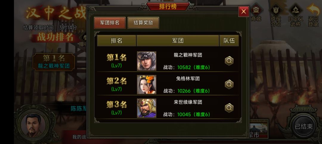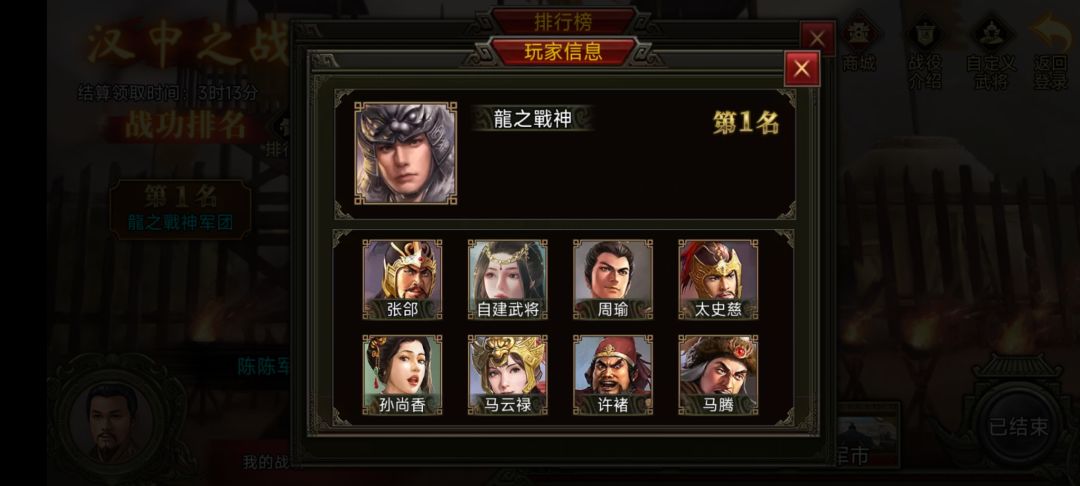 恭喜大大们成功斩获第一期汉中之战的Top3宝座!