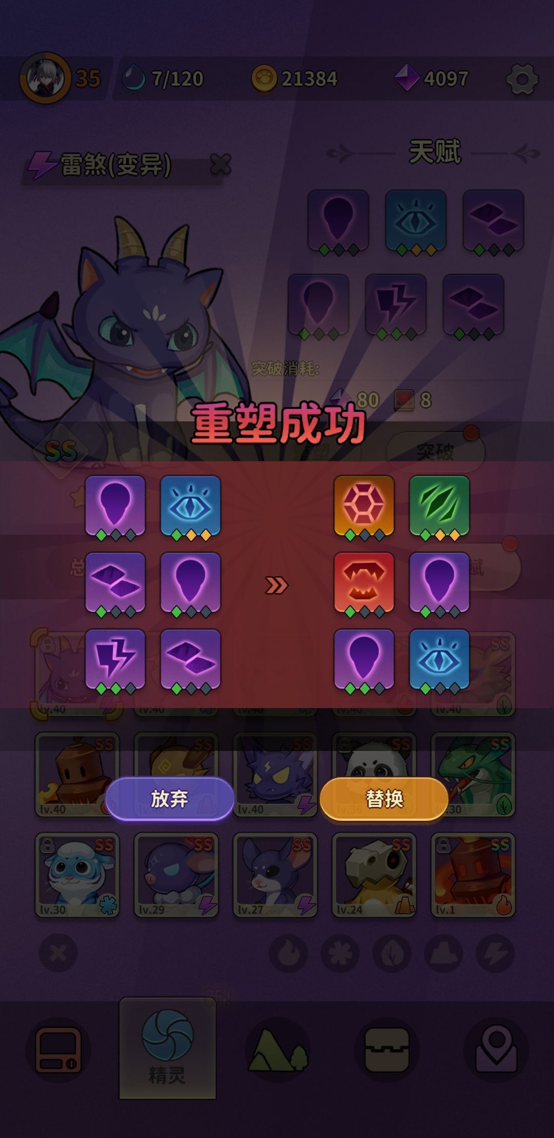 雷煞天赋要换吗,在线等。 原始双技能天赋+闪避+精准 刷出来的 一技能双天赋+暴击+精准+速度+防御