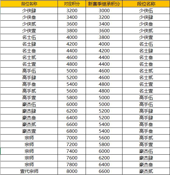 段位积分在新赛季更新后将会变为整数,例如少侠在S1赛季为名士叁:4551分,在新赛季将会更新为名士肆:4200分