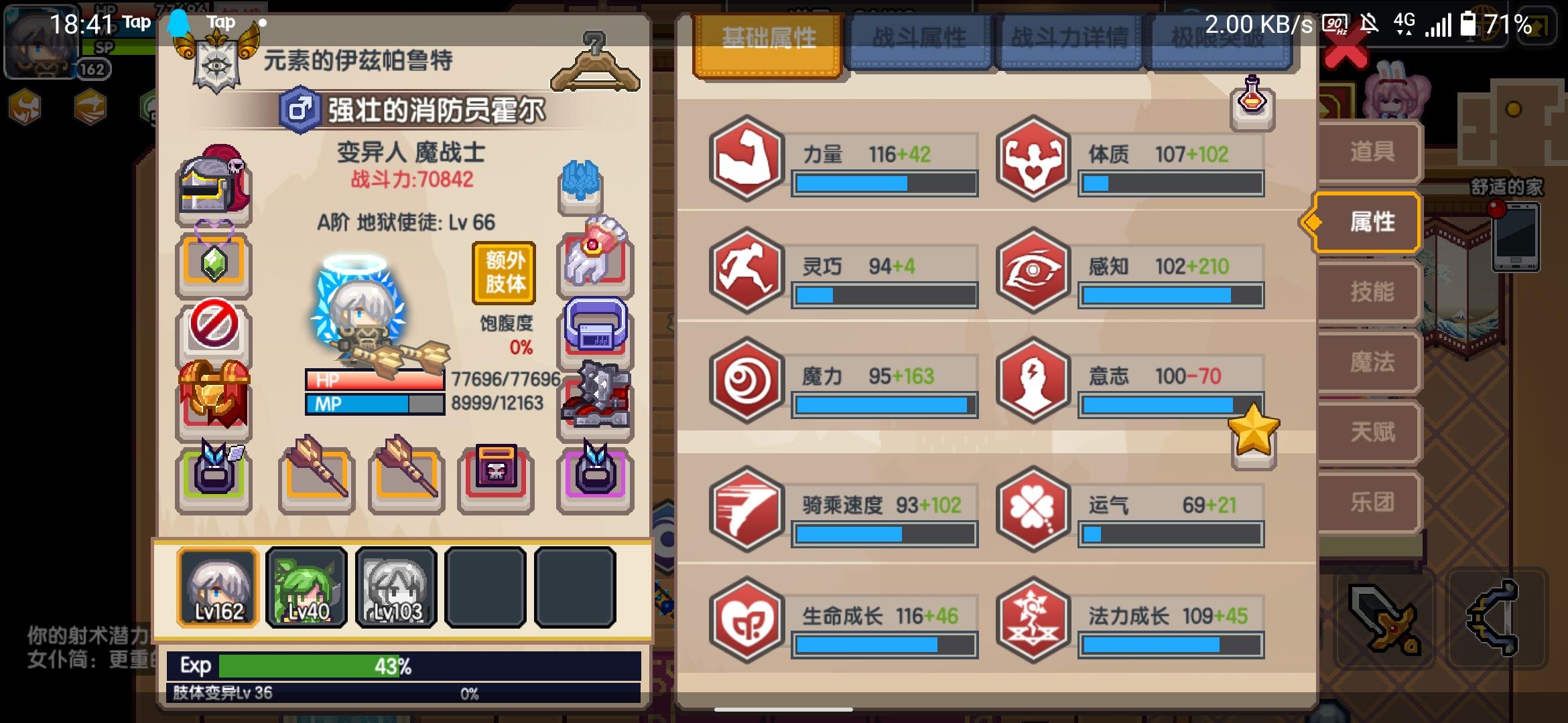 魔战士是追求速体魔吗?我现在信仰的元素,打的特效。装备能触发雷电,地狱和幻射线。感觉伤害挺高的。现在面板是这么个情况