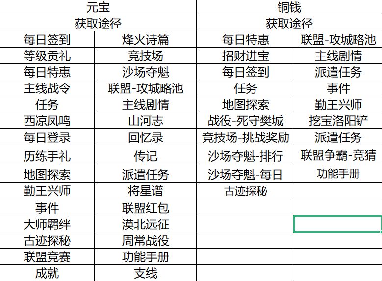 首先是货币,目前游戏内常见的两种基础货币为元宝、铜钱,它们的获取途径较多但日常消耗却很大,下面就是小编整理的一些元宝、铜钱获取途径,欢迎主公们收藏参考。