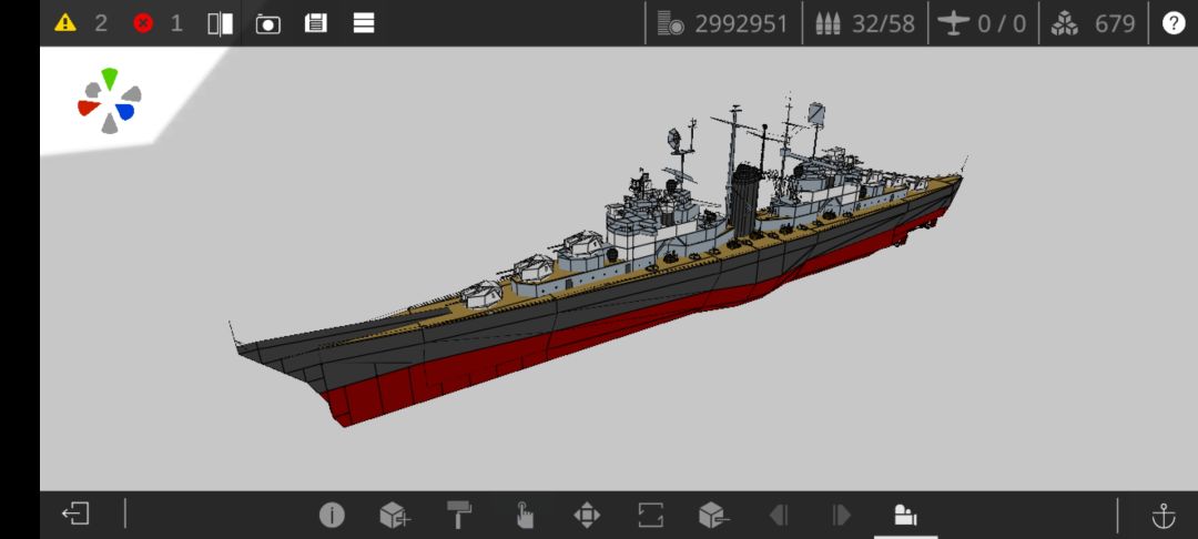 然后怎么找都找不到是因为什么歪,最后我用了拆掉所以装甲再重装的方法,发现还是歪的。然后我找了我以前设计的不歪的船,在试航时是歪的,而且歪的方向都一样。而且用了快速建造的也是歪的。