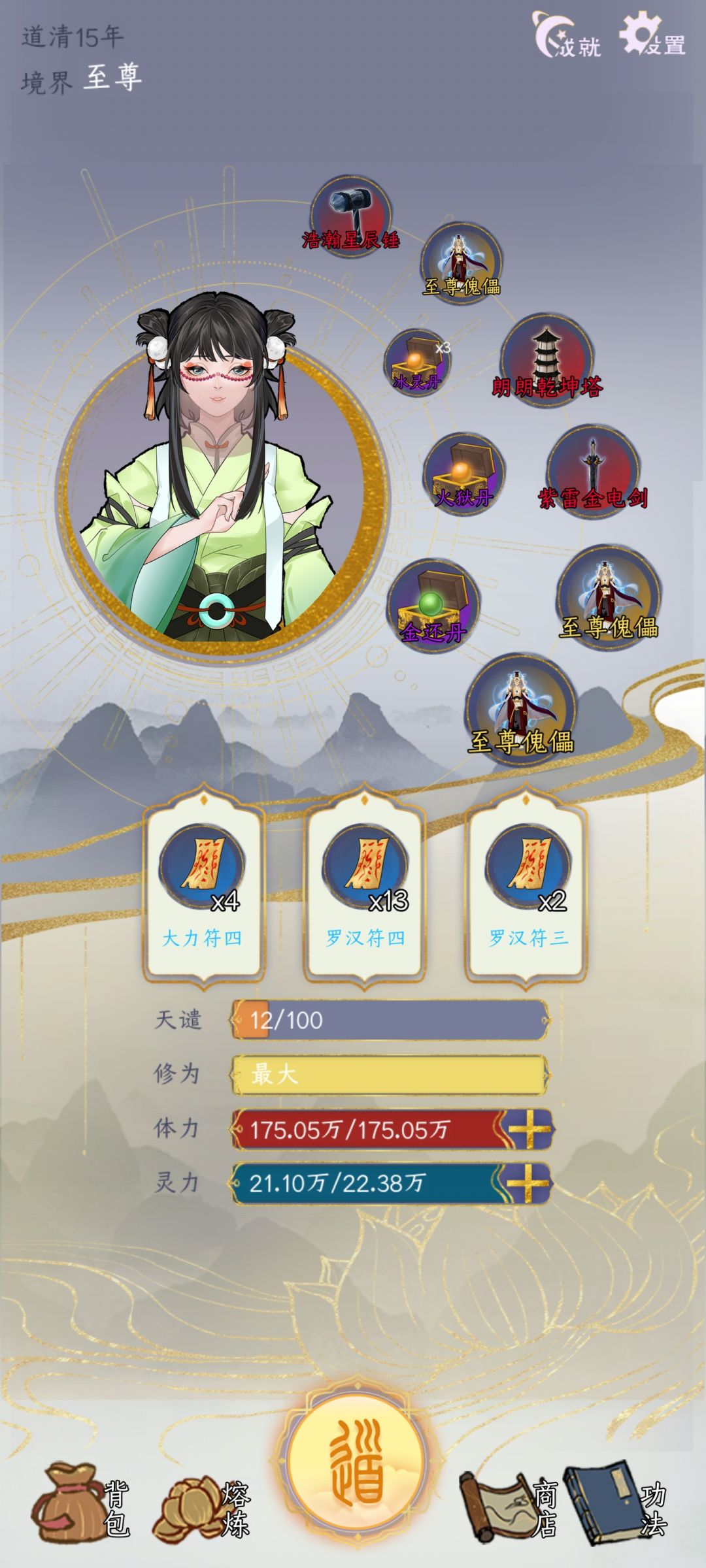 进去先猥琐,有件法宝直接无限刷,一件一件刷,刷到下方5种法宝直接合成(因为有仙人天赋你单件法宝不会报废可以无限刷,刷到自己要的为止)