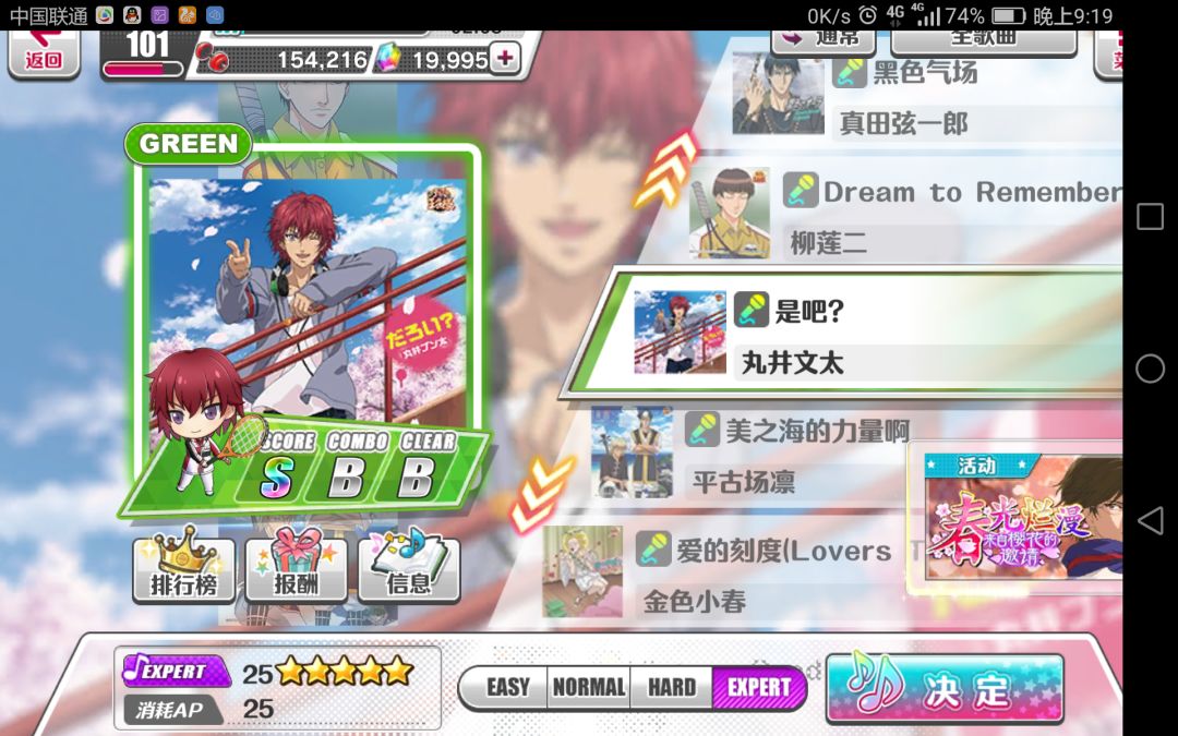 14.最后就是关于国服网王啦。因为是加速活动,所以每一次的活动都是排的很密集,所以不需要猛肝的时候就尽量平A,不要因为游戏而带来压力,不过虽然是这样,其实国服也很良心了,肝度也少很多了,稀有招募的爆率感觉比日服那边高?而且到了一定的时候,国服也会把速度调低。也会把一些福利活动提上来。而且到了后面就会有活动免费ssr,有的是pt有的是排行榜,有些是pt和排行榜个数挂钩,到了后面活动出来也就知道了。国服说实话时不时会有bug,可以和官方说明,让官方维护,退游什么的就太可惜了。嘛,等官方就行了。
