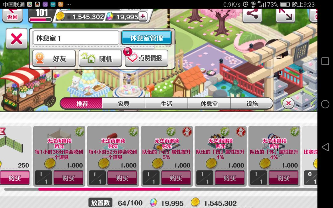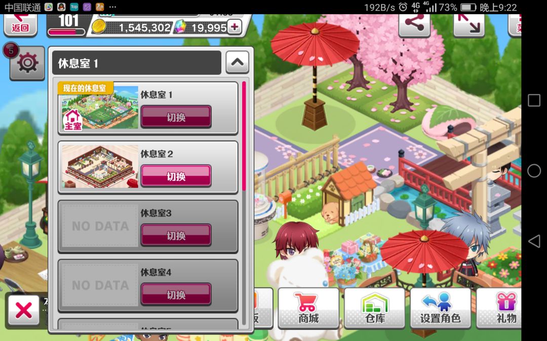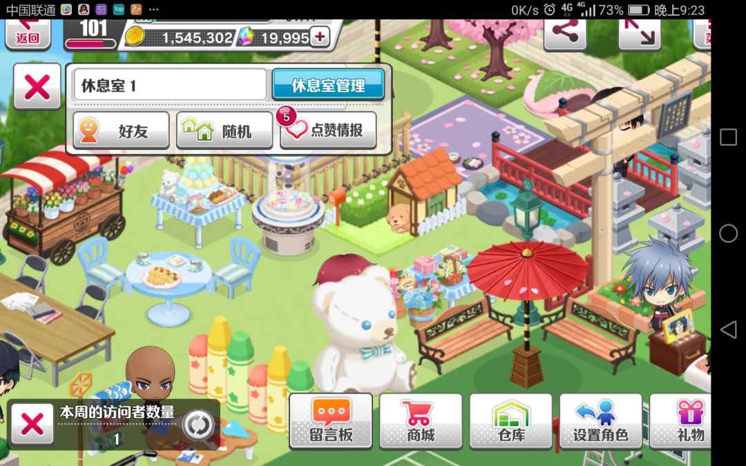 6.休息室的问题。休息室可以拥有好几个,一定要点进去然后进行一系列的操作,然后就可以有不同的休息室,按照个人喜爱设置主室。主室是被别人访问和点赞的。还有就是角色的问题,是按照等级来解锁个数,不知道怎么设置和切换的,看下面那个角色设置,想要提升角色亲密度 除了打歌之外可以送礼物。星星就是。