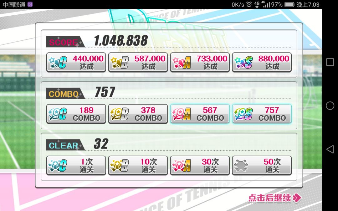 7.打歌的话个人建议萌新一开始如果可以就打hard,练起来之后可以尝试一下21/22的ex,除了个别歌的星数与难度有点不符合之外其它的都还好。当然要真的不是太可以还是按自己的难度和手速来定。任务一定要拿完,所以有时候不一定要把ex次次打到fc(也是看个人)。这里就不推荐一开始打不熟悉的谱面就开两倍,这样如果精力消耗完了,不想浪费体力就要浪费石头,两者之间必须浪费一个,就会很不值得。