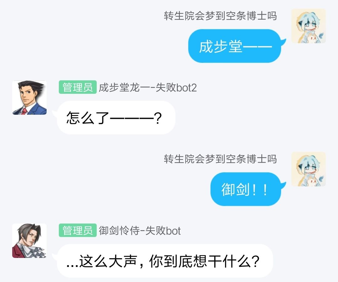同好群→逆转裁判&康怕死且不仅限于这两个圈子!群内每日整活不断更有骰子咪酱和成步堂24小时无限加班(副作用:延迟会很高)