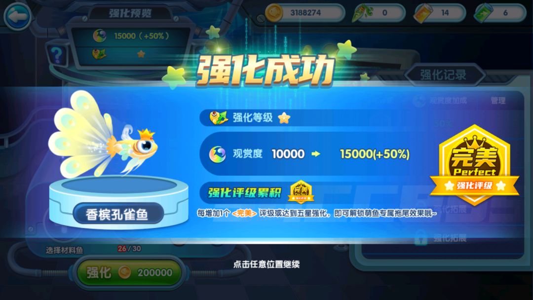 2.强化需要消耗同种皇冠期的鱼和对应的鱼宝、金币;