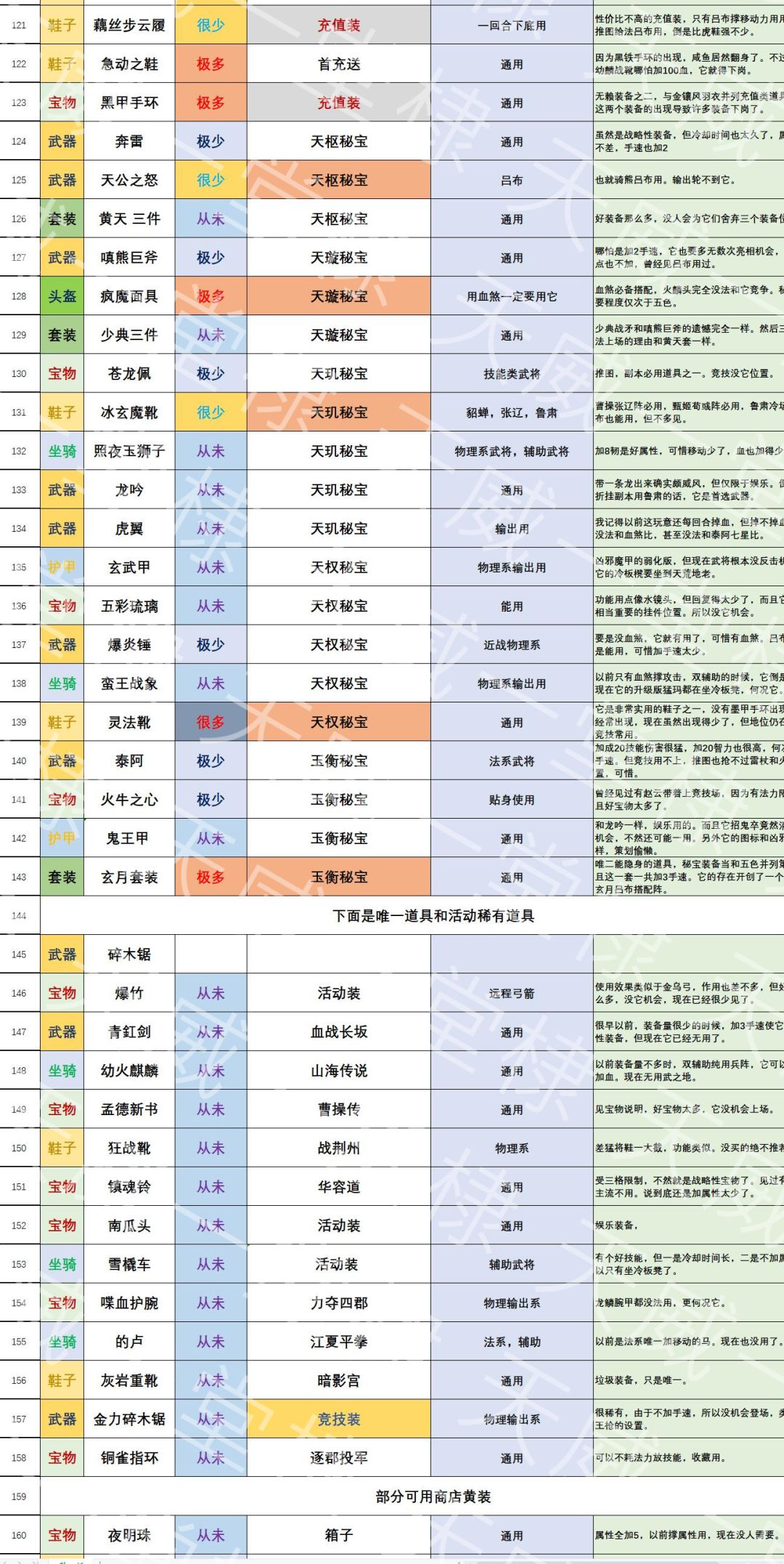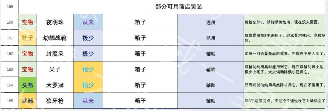2022年竞技场能用,包括所有红装,所有密保,所有活动装,唯一装,以及部分黄装。