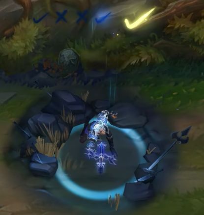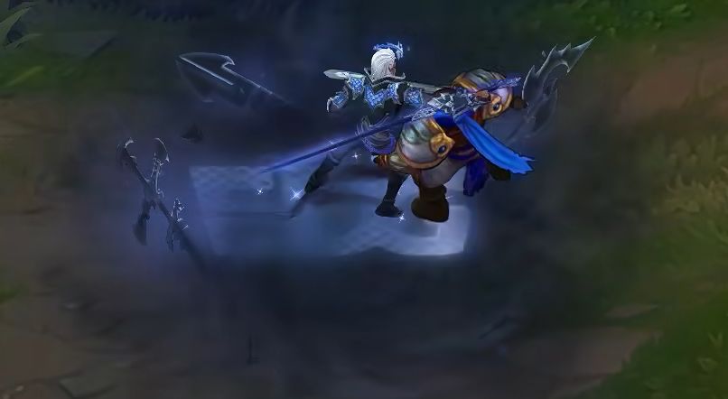 ③大招落地后还会出现皇子与赵信的武器,而赵信的这个枪也确实是皮肤黑暗骑士的模型,而这三个英雄都是Jiejie在决赛中使用过的