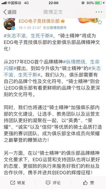 ②是一些网上的传言:爱德朱(EDG老板)有着航公主的昵称,而骑士当然是需要守护公主的,而且EDG在比赛胜利后都会有骑士礼的习惯所以后续也会有了EDG的骑士精神这一符号