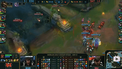 ④第四战S7:这一年厂长为了为了“洗心革面”甚至特意将ID后面特意加了一个“7”更名为Clearlove7,意为不忘初心,牢记使命,但后面网友玩梗7成了厂长,甚至整个EDG的代名词,7酱也由此而来,当年阵容队伍的调整依然没有影响到内战幻神的地位,厂长的猪妹在春决上对战Uzi依然风光,史称“猪狗大战”但到了S赛的小组赛中却和SKT分到同一组,在这一场比赛中也出现了经典“领先1万块一波被翻盘”的名场面,那一年看着EDG能在前期就靠节奏与抓人与强势的SKT拉开巨大的经济差距,心理还是非常开心的,但SKT一波洛的强开团,大虫子的沉默击飞配和兰博发条皇子大招等等一众aoe技能打破的原有一边倒的局面,将局势一下子掰了回来