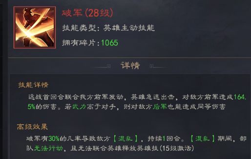 配合破军技能高级效果,破军能连续释放,并且破军技能高伤害加控制,可以说是非常强力。