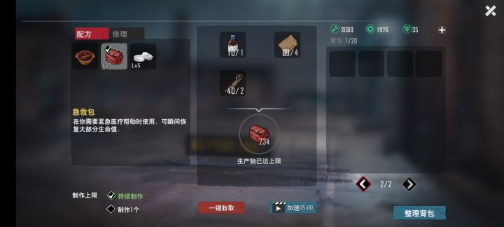 1个医疗箱其实就是1个绷带的材料加上半份的果汁,果汁可以去飞机一小时抵达里面的机场采集浆果,就地做个篝火做果汁,砍树用木头做燃料。一直刷的话大概一局能做60份果汁,把蒸馏器和医疗箱天赋点一下,能做满上限。