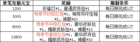 拥有神箭纪念卡:可于每日活动-寸草春晖-领取奖励神箭*5,活动最后1日入手此卡也可领取7份礼品
