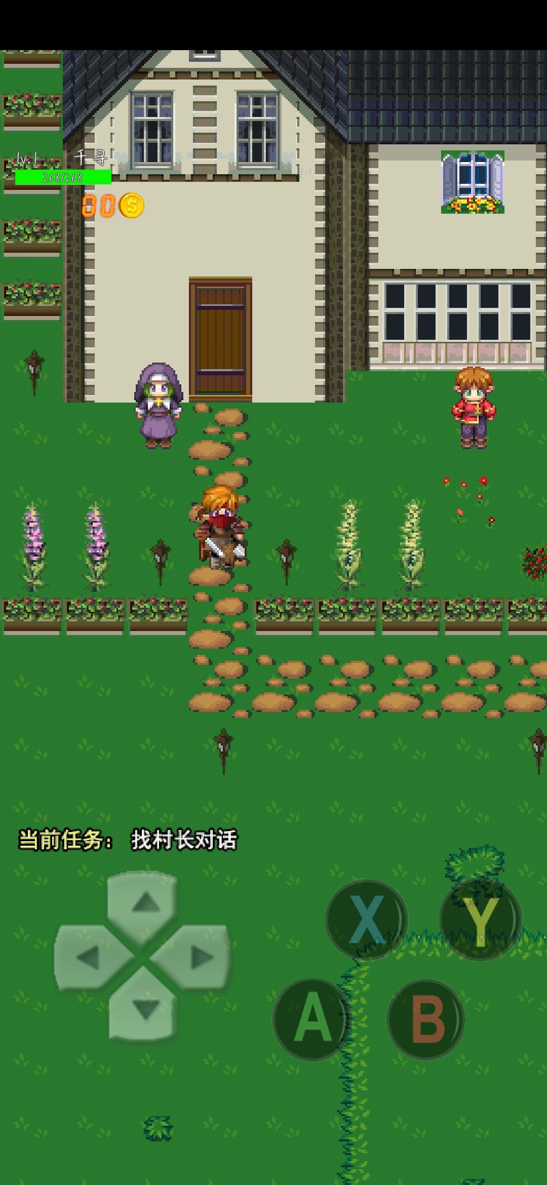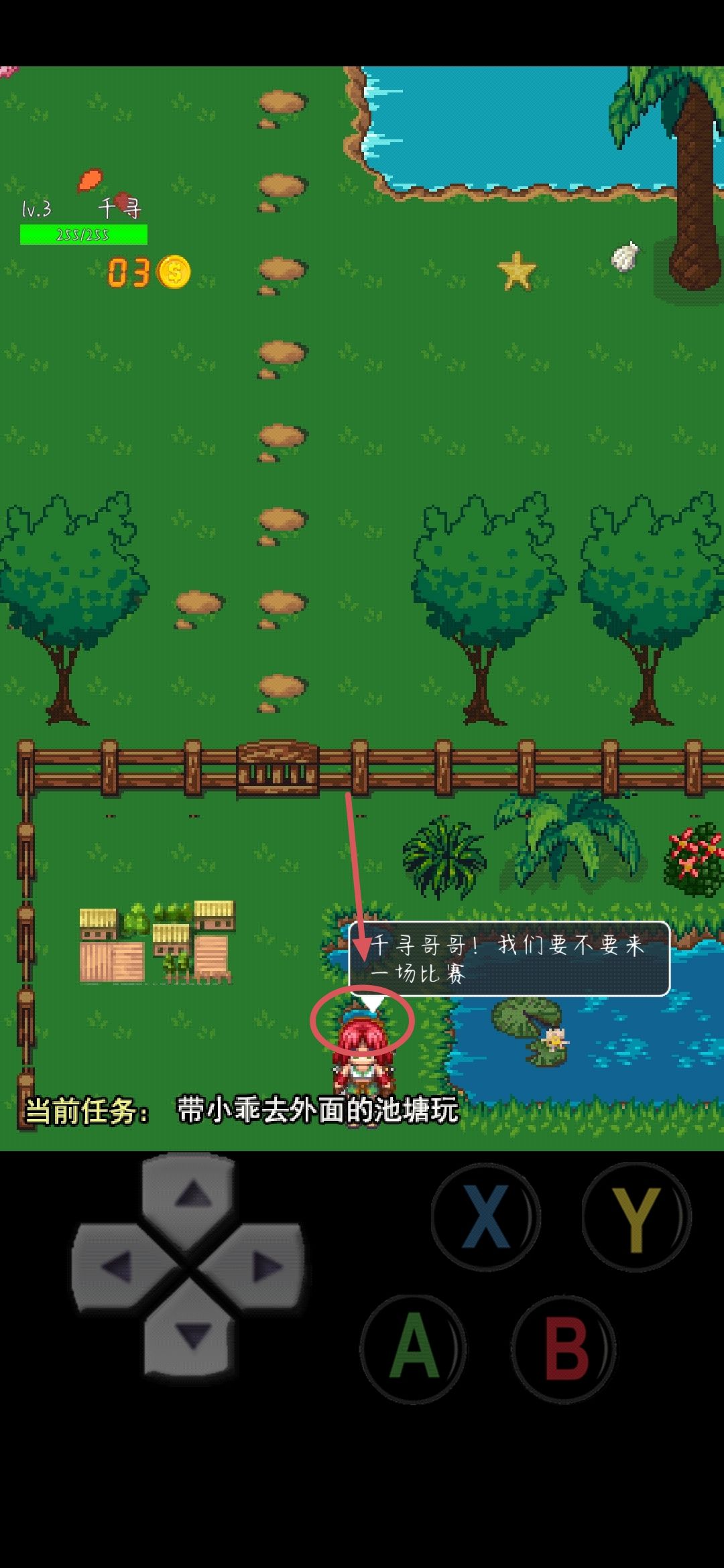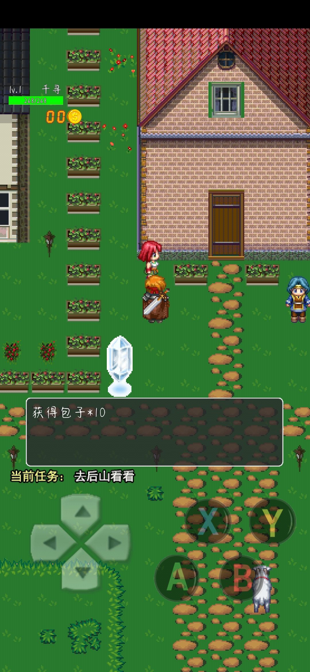 这个帅气的老头子就是村长啦!这时候咱们要去后山了!不过不要着急!咱们先去找小乖【正宫】陪她玩然后咱们就得到了10个包子【回血的】