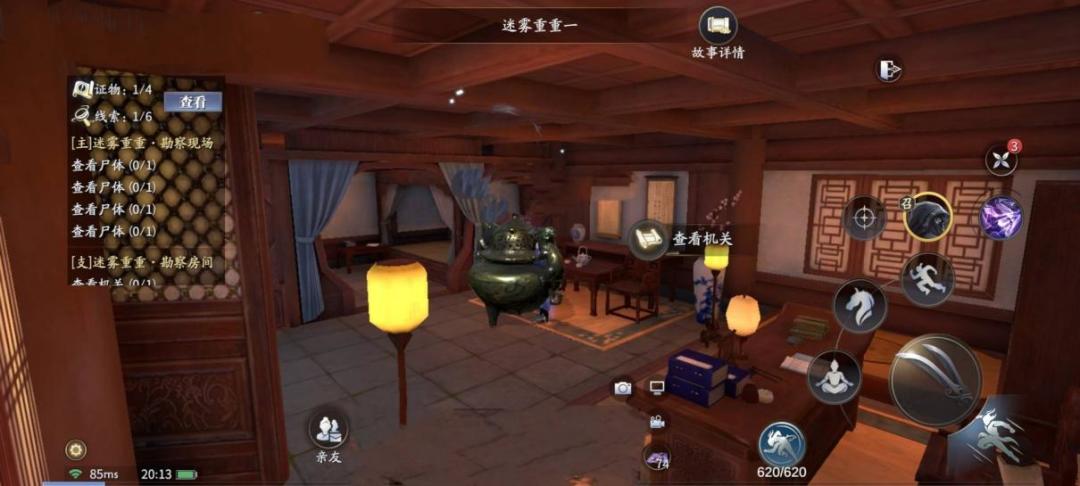 进入那排尸体中间的屋里可查看机关,获得支线【迷雾重重.勘查房间】,再向屋内探寻可搜索房间,获得线索【迷香灰烬】。