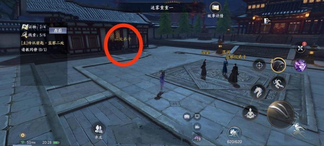 开场先跑出案发地外,自动获得支线【迷雾重重.周遭发现】。与门外监察院弟子对话,跟随脚印出城外查询马匹数量,得到线索【无主马匹】。