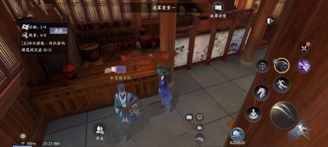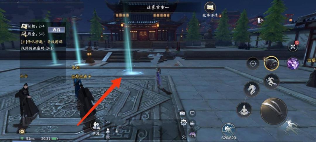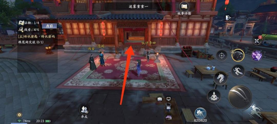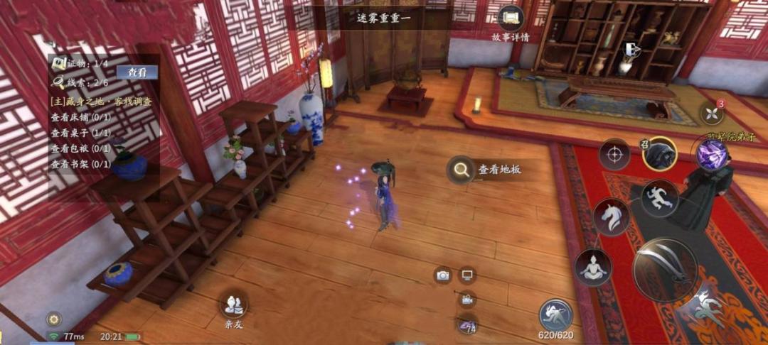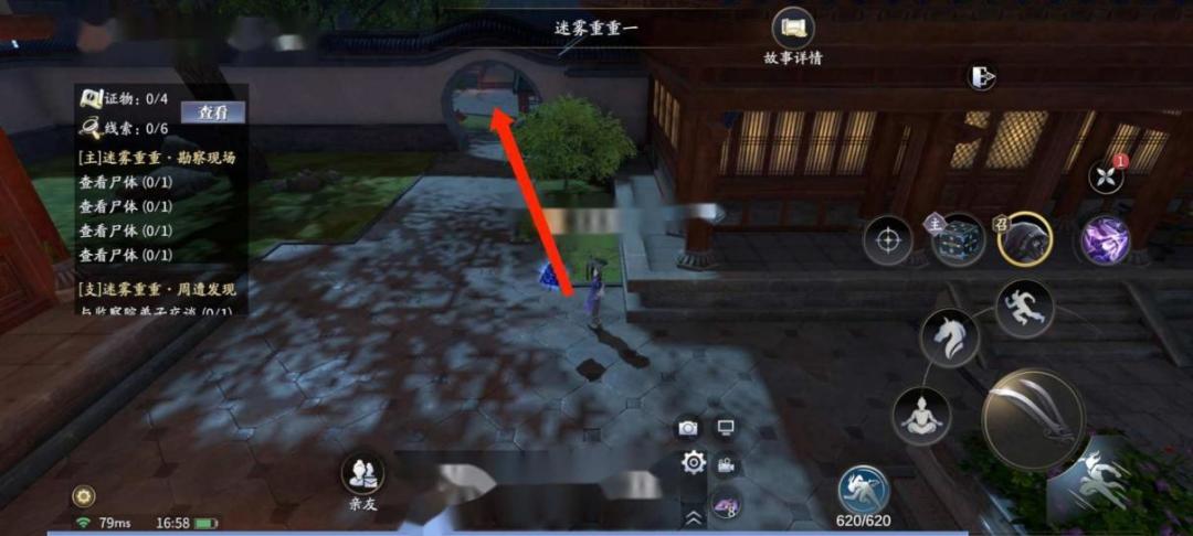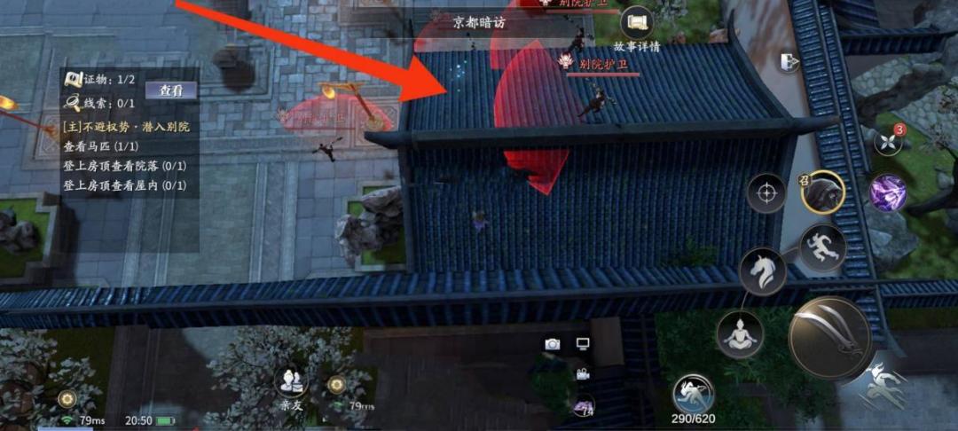 再往里一个院子,登上进入月亮门右侧护卫最多的房顶,查看光点线索后获得提示,去月亮门另一侧查看马车,获得证物【九宫格】。
