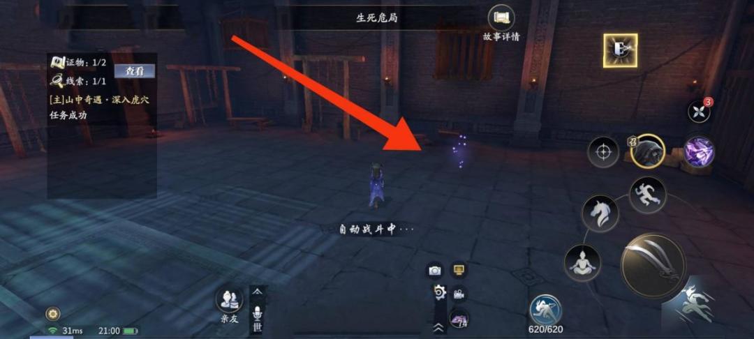 全程自动寻路跟主线走,不出所料会看见主角小傻子被人调虎离山,并且获得线索【信件】。