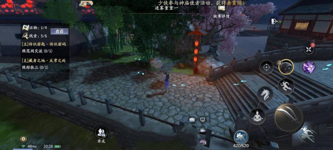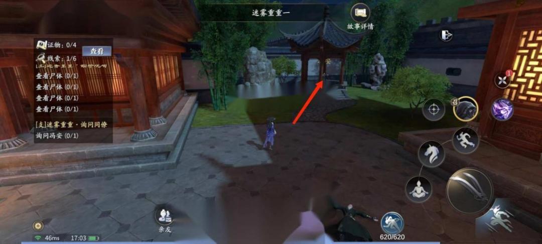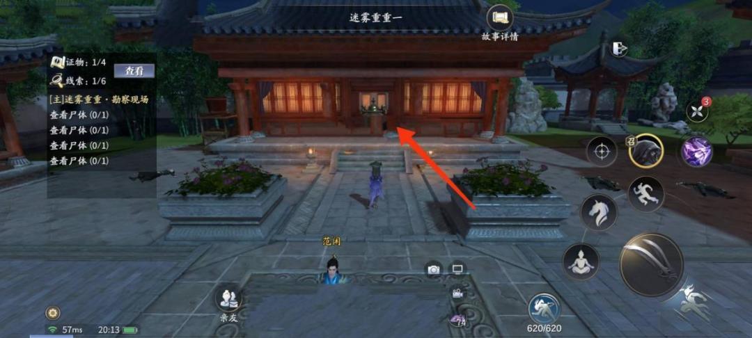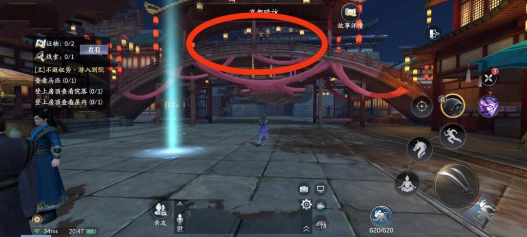 在进入别院场景前,先跳上虹桥靠近女子,获得支线【不避权势.寻找目击者】,与女子对话,劝服意欲自尽的她,与之舌战,失败可重来,成功为止,赢后与女子对话获得证物【女子证词】。