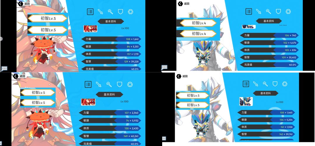 如图,分享两组角色的修炼对比,用于判断不同修炼结果所造成的差距