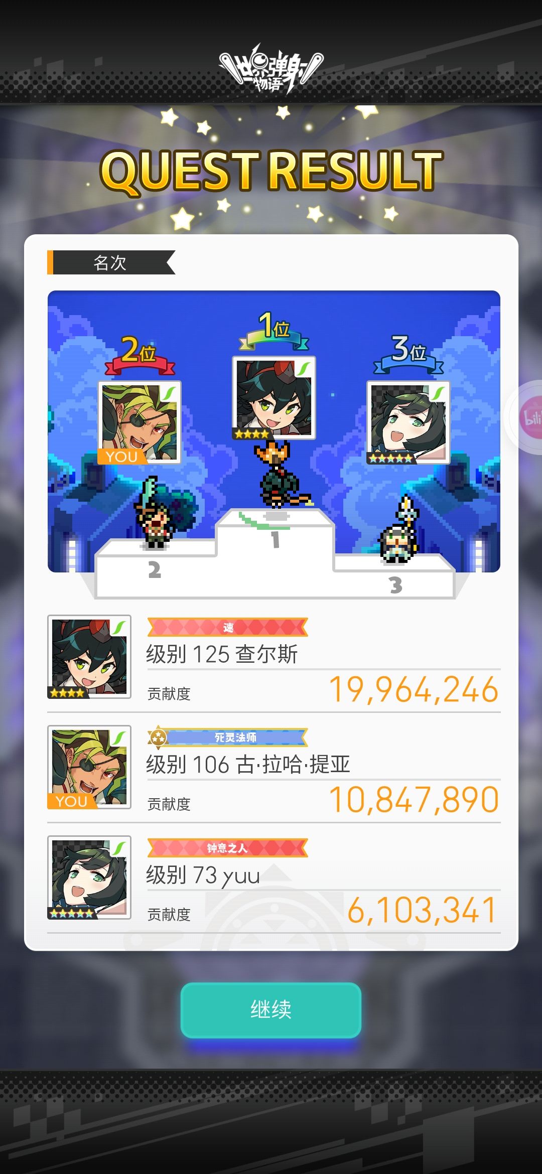 第一名是连击风,第三名是....乱配的。不过最好的是这次还没到半血,圣杯就先掉了(再次扣题),这没了圣杯的白虎战力直线下降,三个人硬是给他刮死了!![[嗒啦啦4_坏笑]](https://img.tapimg.com/market/images/644c03a7456ff71d7b6b6a919b2d8817.gif)