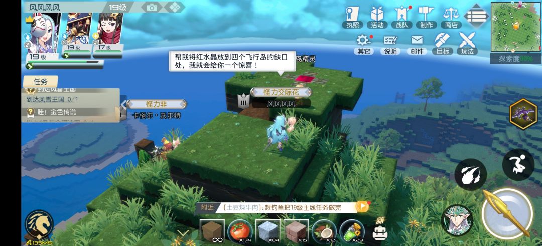 面前有四个红宝石(我已经拆了),让你拆了按到岛四周的四个飞行岛上