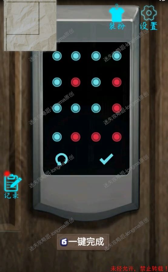29.点击门上的密码锁,根据之前茶几底下的线索址输入密码(如图29),打开门出去。29