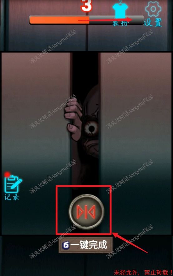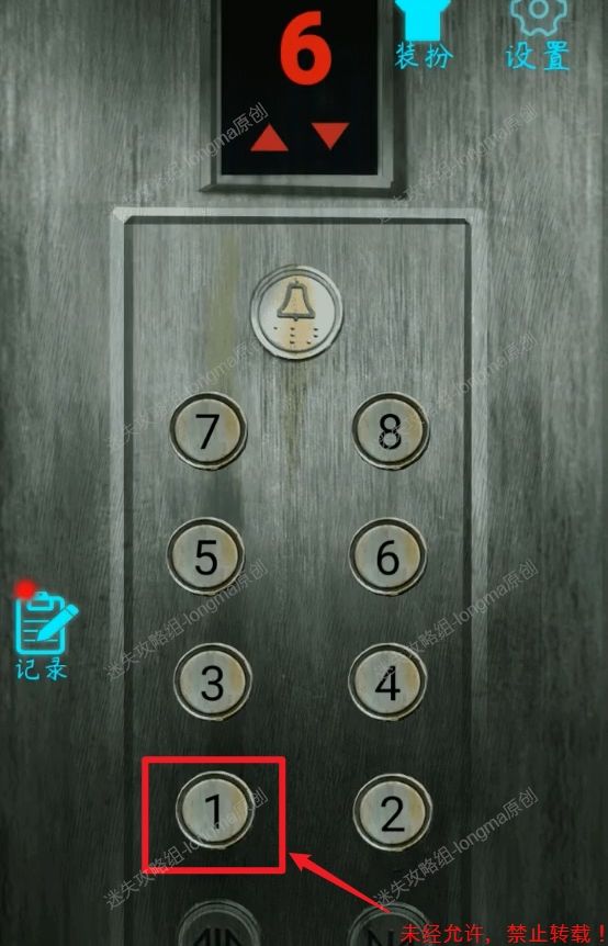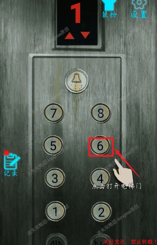 8.在电梯口点击1楼按键,电梯出事故后,点击按键中任意一个(都是4),进入小游戏,快速的点击关门按钮,在规定的时间内使上面的进度条到头。8 8.1