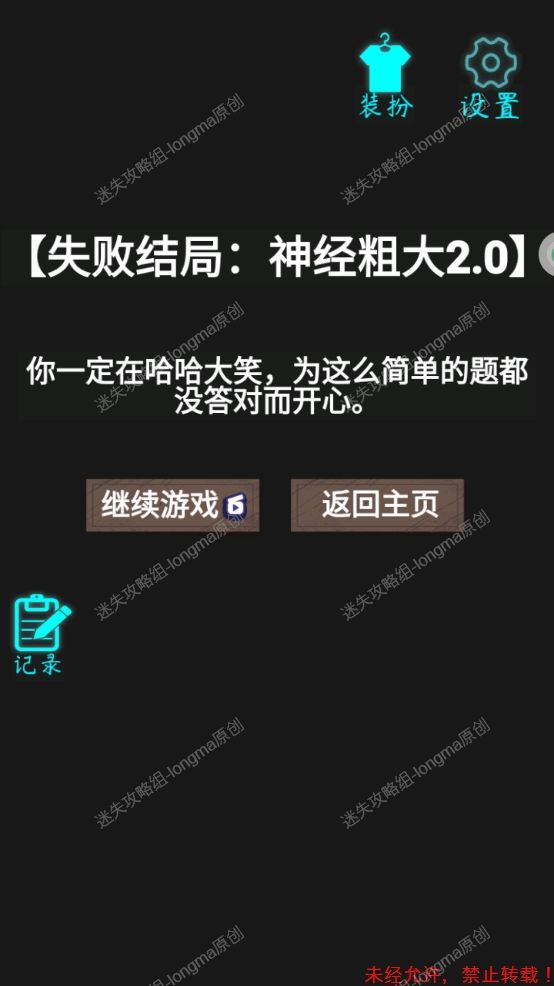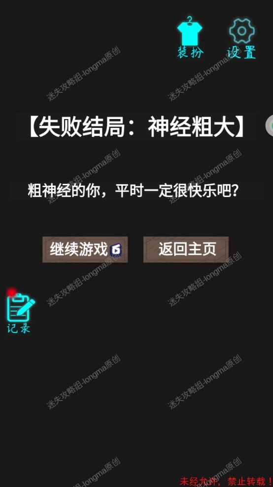 6.在前台线索选择中,多次选错-失败结局:神经粗大2.0。6