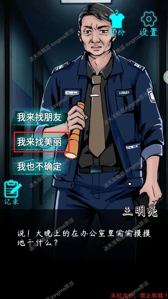 15.遇到保安后选择【你又是谁】-【来找人】-【慌张应对】-失败结局:格局。