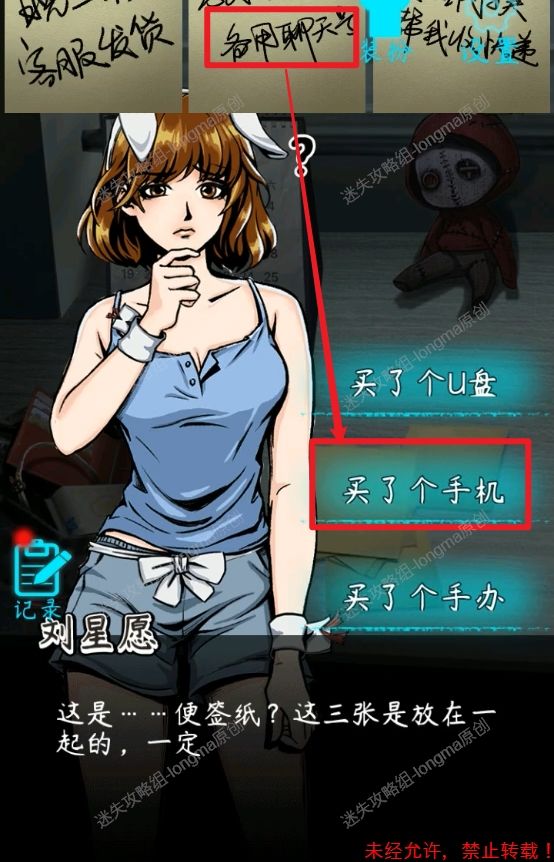 12.查看桌子上的便签,选择【买了个手机】(聊天号是手机上的功能)。12