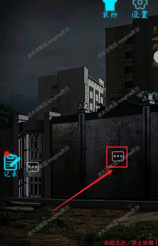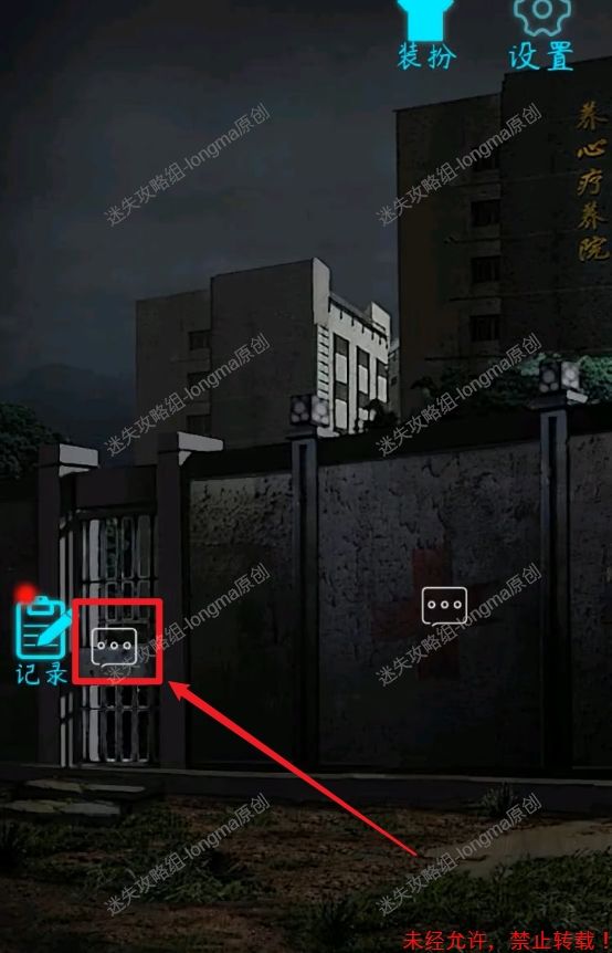 17.来到养心疗养院的大门口,向左滑动场景,从最左边的铁门进入,选择【进入侧门】。17