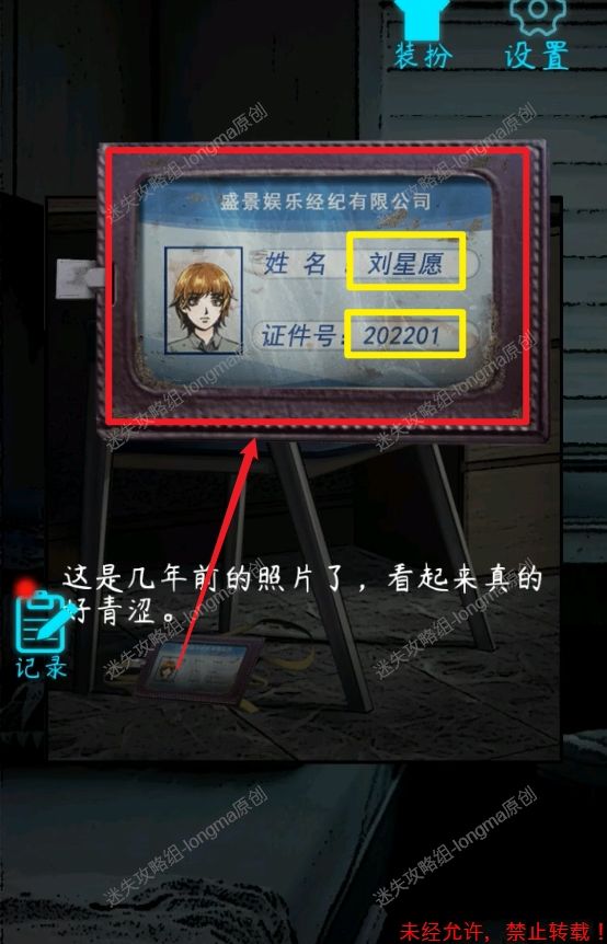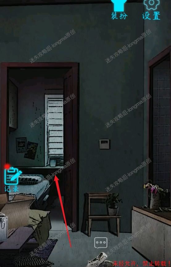 6.向左拖动场景,点击左边的门进入卧室,在卧室的椅子下面找到工作牌,记住工作牌上的号码和名字。6 6.1