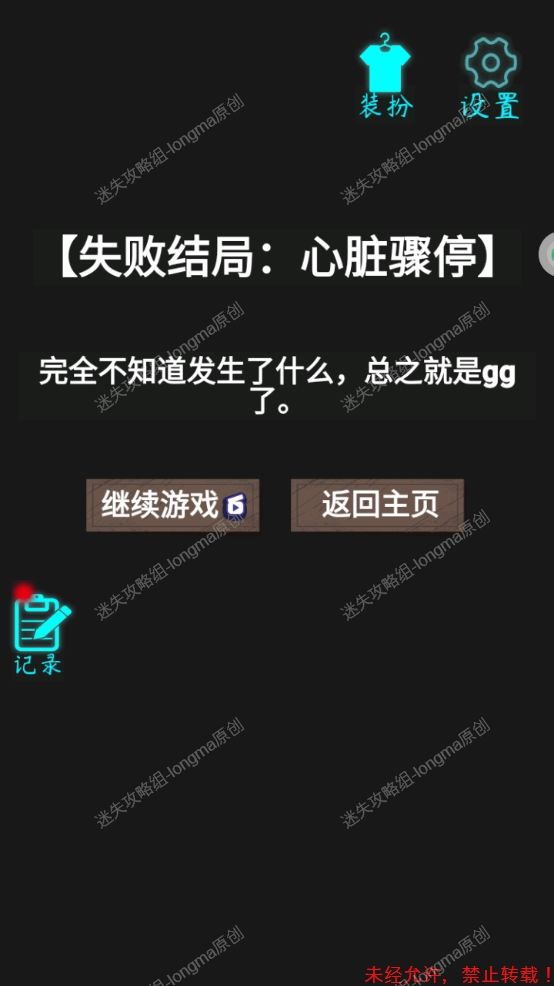 3.电梯小游戏中关门失败-失败结局:心脏骤停。3