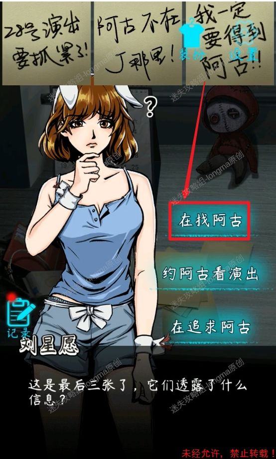 14.点击桌子上的便签,最后选择【在找阿古】。14