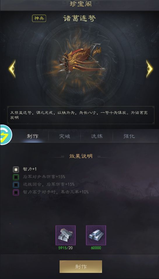 在珍宝阁内选中主公心仪的装备,在制作材料足够之后点击制作即可打造装备,打造装备需要一定的时间,主公也可以选择使用沙漏道具加速制作~