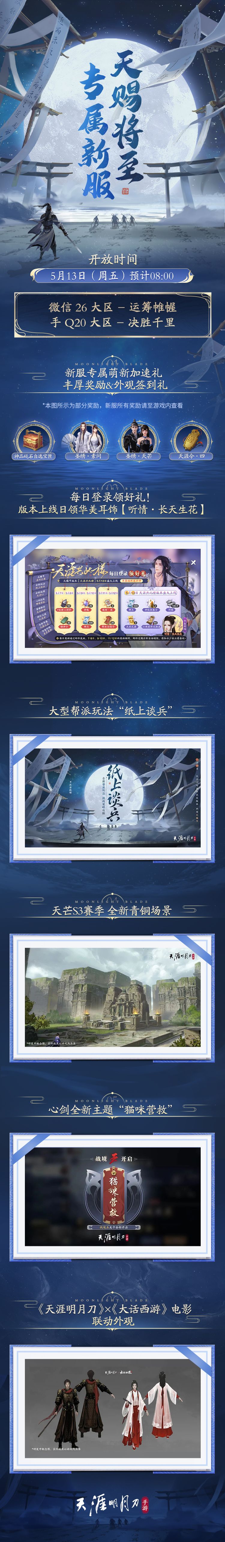 ☆ 新版本将至,倒计时福利来!5月7日起每日登录游戏,绑点、神侠招募令、缘材·进等直接领,5月13日版本上线当日更有华美耳饰【听情·长天生花】!