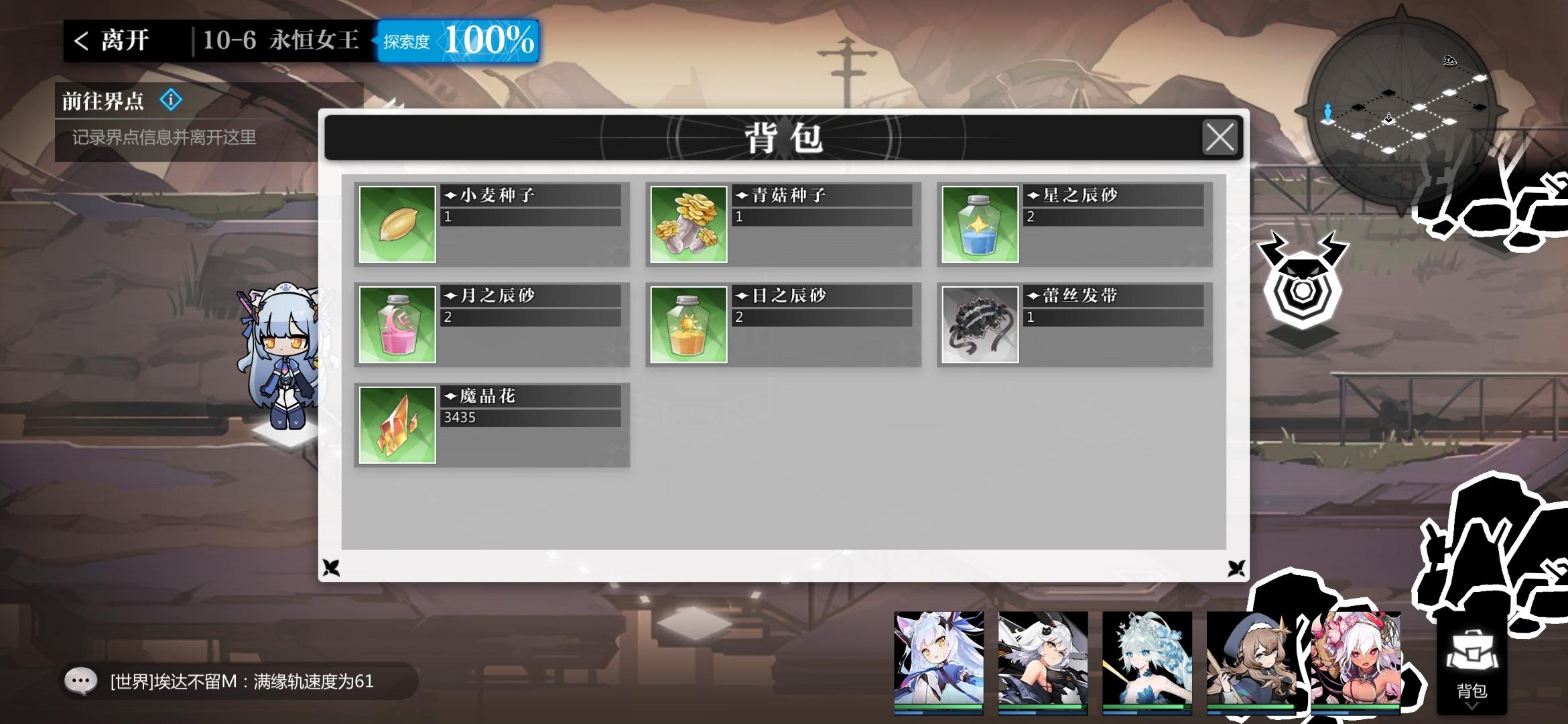 然后,我就跑到10-6去手动刷素材了,因为10-6我估计应该是最快能拿到比较多的素材的地方,一共有7处,刷一次大概需要三分钟,然后我就这样刷了大概一个小时,这张图应该是我刷的最幸运的一次,最倒霉的是一个素材都没有刷到
