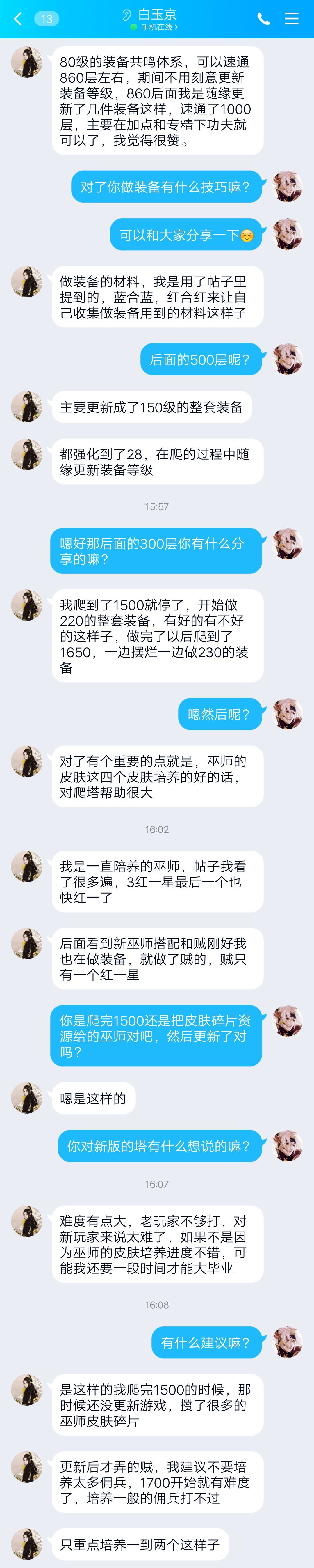 0-1500用的巫师来打,后面1500-1800用的巫师和贼,爬塔时期他在群里比较活跃,不懂就问嗯这很好,从零到现在这个进度,历时一个月左右很不错。