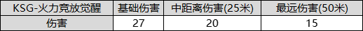 KSG-火力竞放觉醒的单颗弹丸的伤害是27点,受距离衰减严重,远距离仅有15点伤害,同时由于散弹枪的散射性,在远距离的情况下基本无法击杀敌人,不推荐远距离对射。