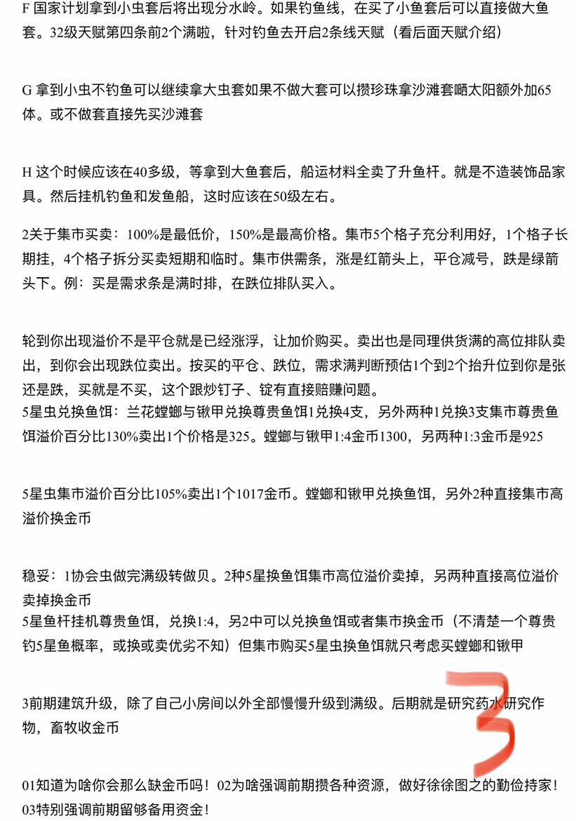 前期协会做虫到36周满级,船运做鱼贝船相互拆开做,等虫协会满级在做贝,虫按我以前发的攻略,5星螳螂,锹甲换鱼饵,凤蝶和闪蝶直接卖集市